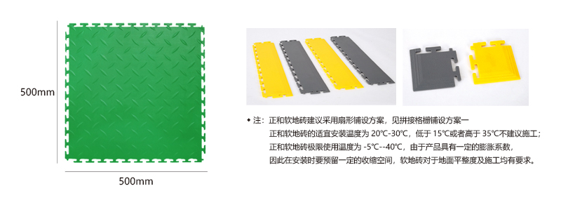 軟質(zhì)絕緣地板能將每個獨(dú)立的地板快速拼裝成整體地面,專利型鎖扣結(jié)構(gòu)連接能力更強(qiáng),可承受叉車的來回碾壓。施工過程中無需膠黏劑等