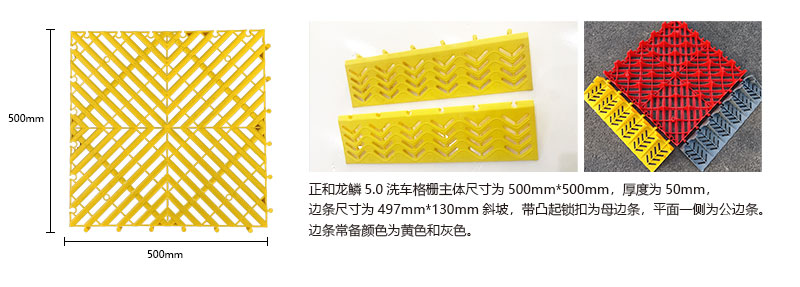 1.龍鱗紋設(shè)計,防滑,美觀,寓意好 2.選用高級原料,加入其他輔料,顏色亮麗,無異味,無污染 3.顏色為紅黃藍綠黑灰六色,滿足客戶用色需求,搭配屬于自己的風格 4.通扣鎖扣設(shè)計,容易鋪設(shè)且容易拆卸打理 5.加強支撐,不容易出現(xiàn)壓壞壓斷現(xiàn)象,滿足大多數(shù)車輛施工的要求 6.使用年限長,3年超長質(zhì)保,使用無后顧之憂 7.不同厚度,采用不同支撐,保證承載最大化的同時,且易排泥排水